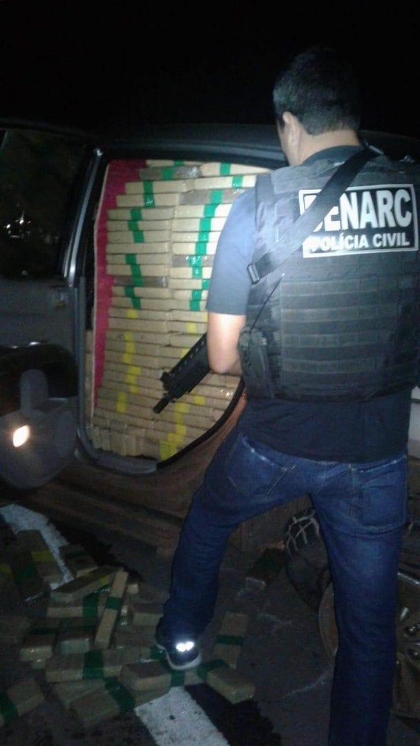A Delegacia Estadual de Repressão a Narcóticos (Denarc) apreendeu na madrugada de domingo (20/1), cerca de 1 tonelada e meia de maconha, na BR-060, em Goiânia. A droga estava em uma camionete que provocou um acidente durante a perseguição policial. Com a batida, os tabletes foram arremessados para fora do veículo.