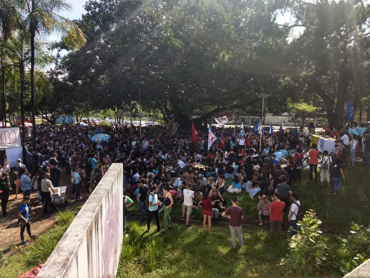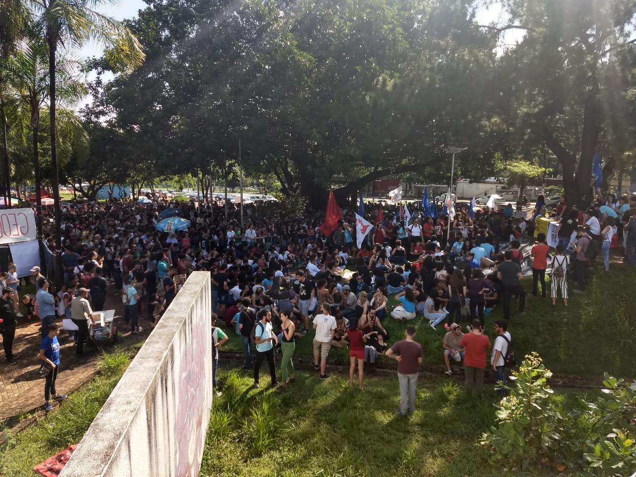 O dia foi de manifestações pelo Brasil devido ao anúncio de cortes feito pelo governo Federal na semana passada das Universidades e Institutos Federais. Em Goiânia também houve manifestação, o grupo se reuniu na no início tarde desta quarta-feira (15/5) na Praça Universitária e por volta das 16h seguiu em uma caminhada para a Praça Cívica no Centro da capital.