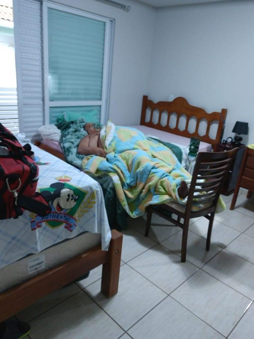 Os bombeiros contam que ao chegarem ao local, se depararam com o homem, que pesa aproximadamente 200 quilos, deitado na cama num quarto no 2º pavimento em sua residência. Devido ao sobrepeso, o homem, que tem diversos problemas de saúde, era incapaz de se locomover. Não foi divulgado há quanto tempo o homem estava na situação constatada pelo Corpo de Bombeiros.