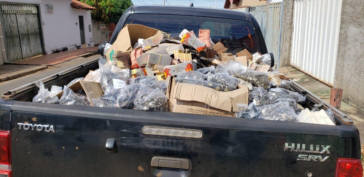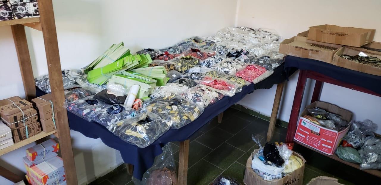 A Polícia Civil de Goiás (PCGO) apreendeu quase uma tonelada de aviamentos falsificados, além de quase mil peças de roupas também falsificadas, em Jaraguá, na região central do estado. Durante a ação, foram cumpridos quatro mandados de busca e apreensão domiciliar; um homem, responsável pelas peças, foi preso em flagrante.