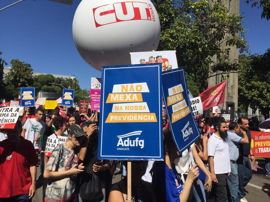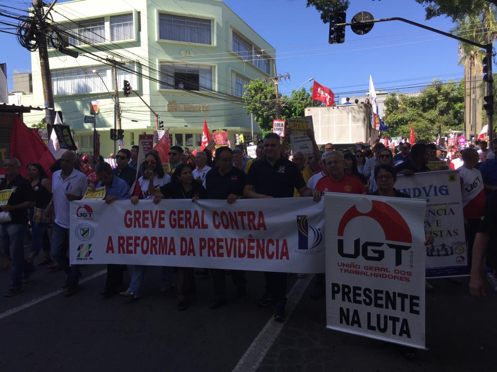 Metalúrgicos, servidores dos Correios e de bancos manifestaram apoio e adesão da greve de 24h. Trabalhadores que atuam na área de Saneamento, Energia e Saúde também apoiam o ato. “Categorias estratégicas, com bases fortes, se mobilizaram em Goiás. Esta greve não é do serviço público, mas sim de todos os trabalhadores que são contra essa reforma que retira direitos da população”, disse João Pires, diretor do Sint-Ifes e do Fórum Goiano contra as Reformas Trabalhista e da Previdência.