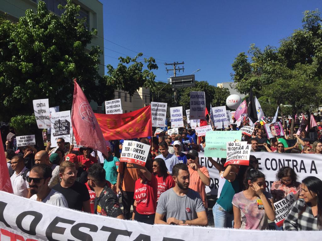 Acontece nesta sexta-feira (14/6), ao longo de todo o dia, uma greve convocada em todo o país por sindicatos, entidades e representantes da sociedade civil contra os cortes na Educação e a Reforma da Previdência em tramitação no Congresso. A greve, de caráter nacional, teve adesão de vários municípios goianos e afetou a circulação de ônibus e aulas em algumas escolas públicas e privadas de Goiânia.