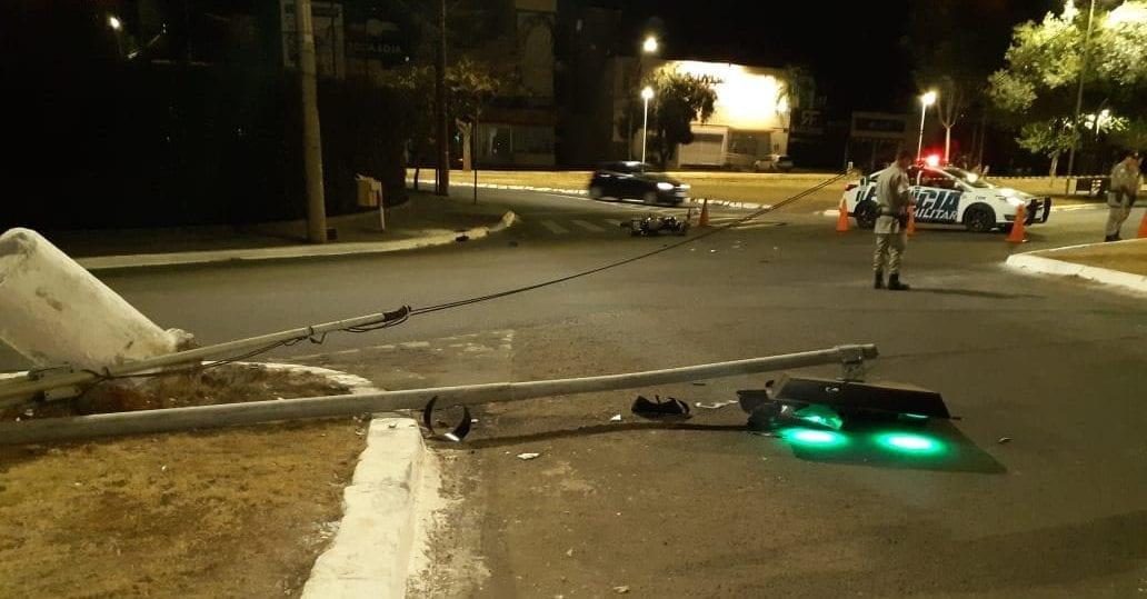 Motorista que derrubou semáforo na Avenida 85 se recusou fazer teste do bafômetro