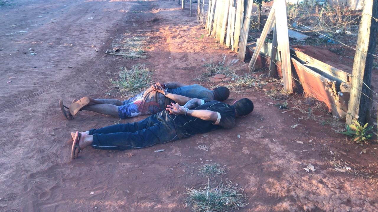 Polícia registrou momento da captura dos indivíduos autores de tentativa de furto a banco, em Planaltina de Goiás