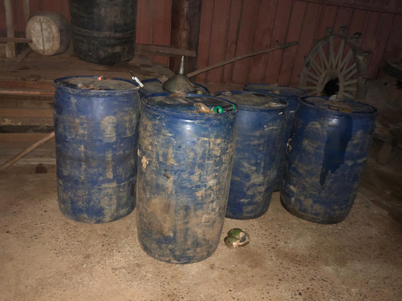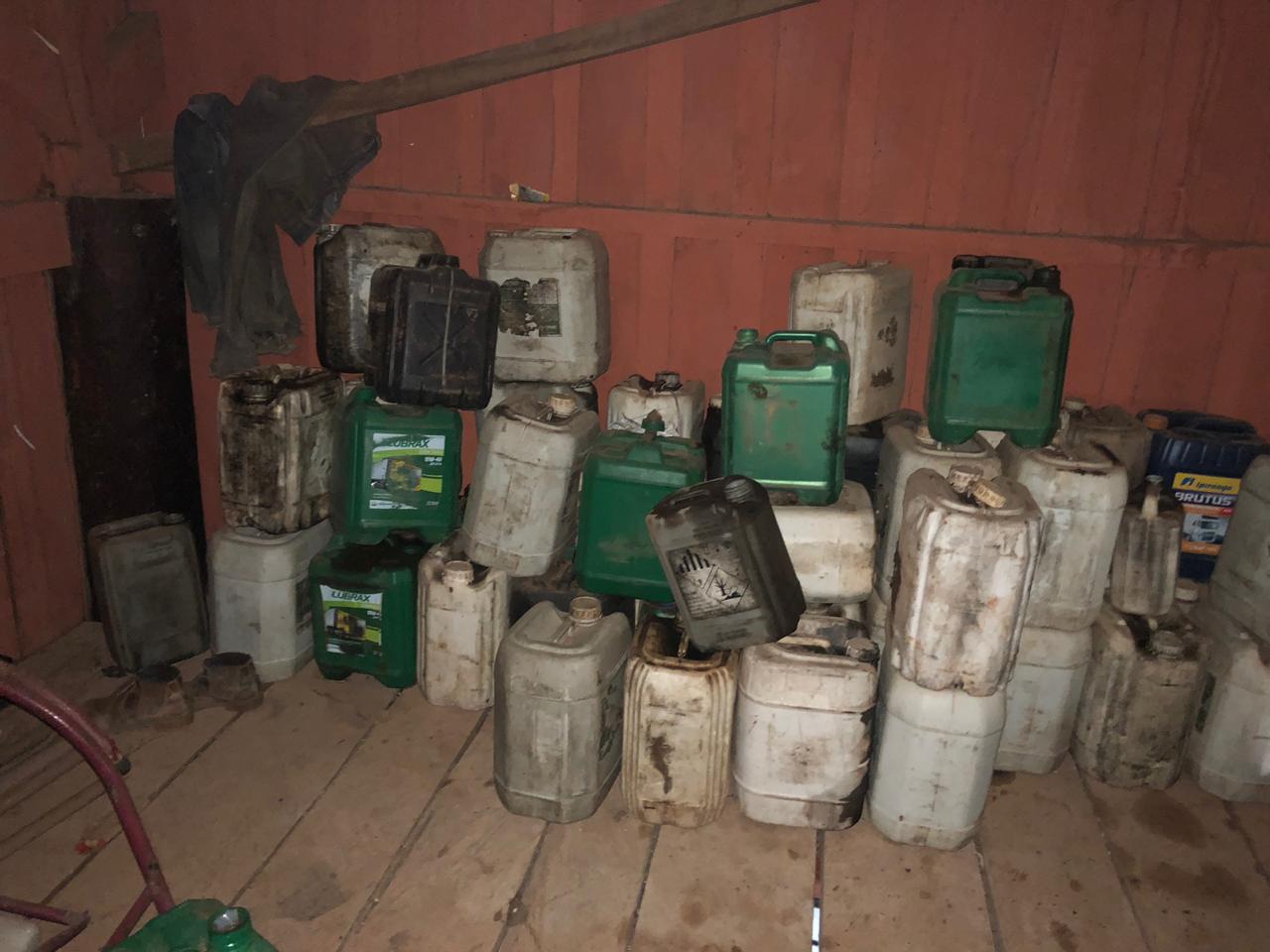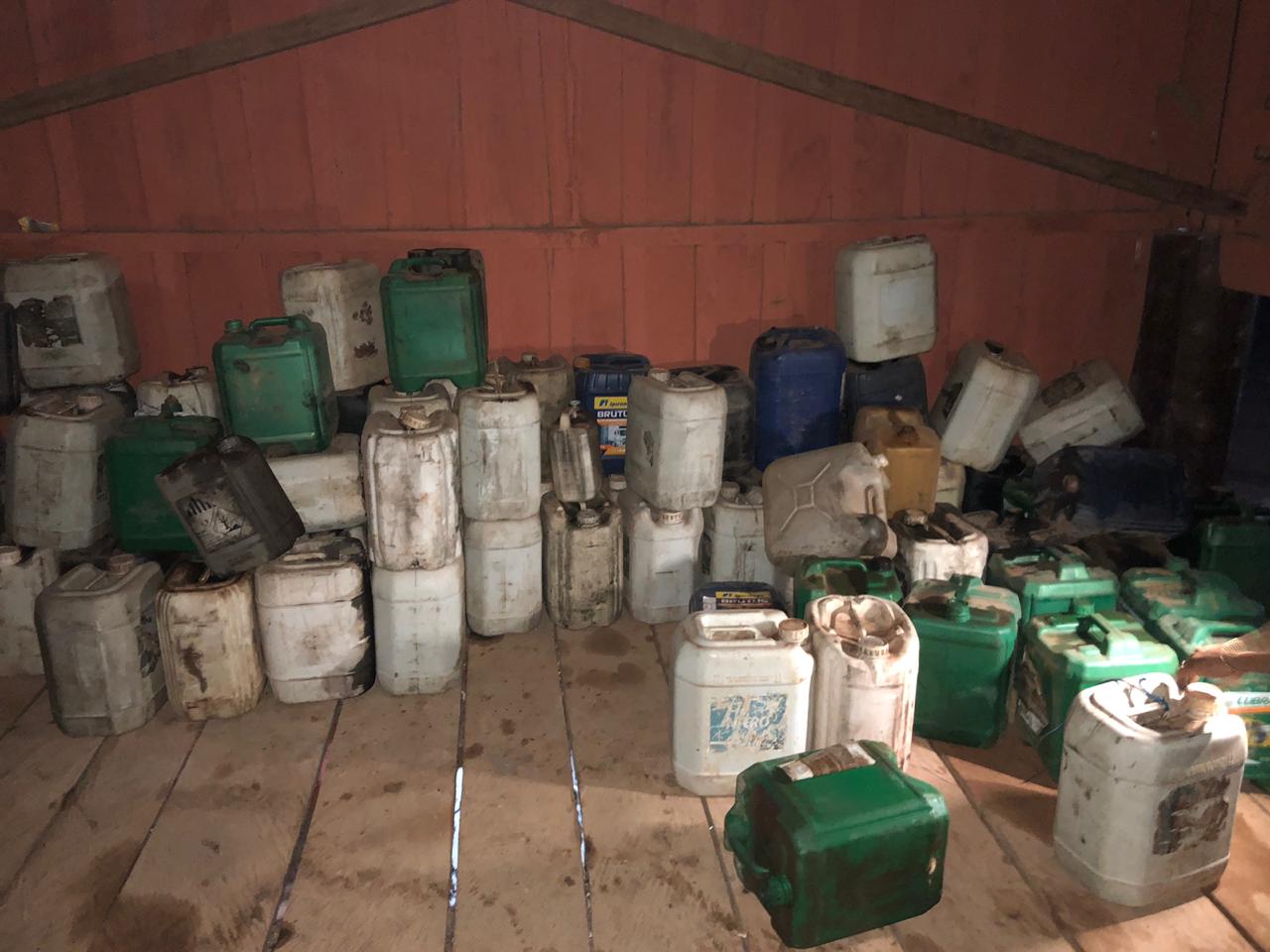Polícia apreendeu dezenas de galões com gasolina na propriedade de suspeitos de provocar incêndios na Amazônia