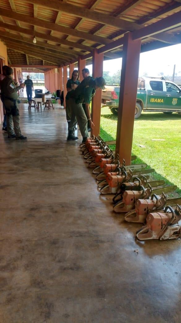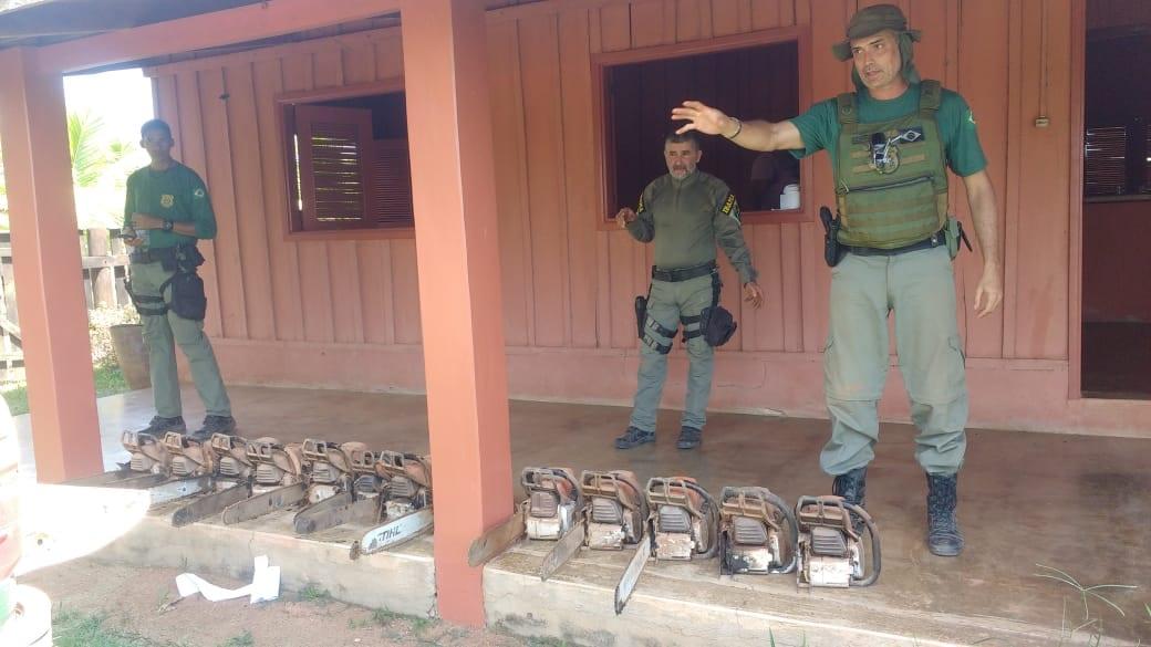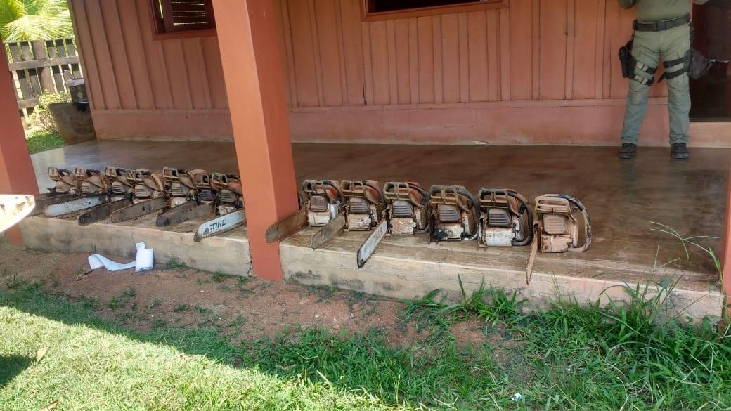 A polícia informou que agentes do Instituto Brasileiro do Meio Ambiente e dos Recursos Naturais Renováveis (Ibama) estiveram na fazenda, onde encontraram dezenas de motosserras e espingardas.