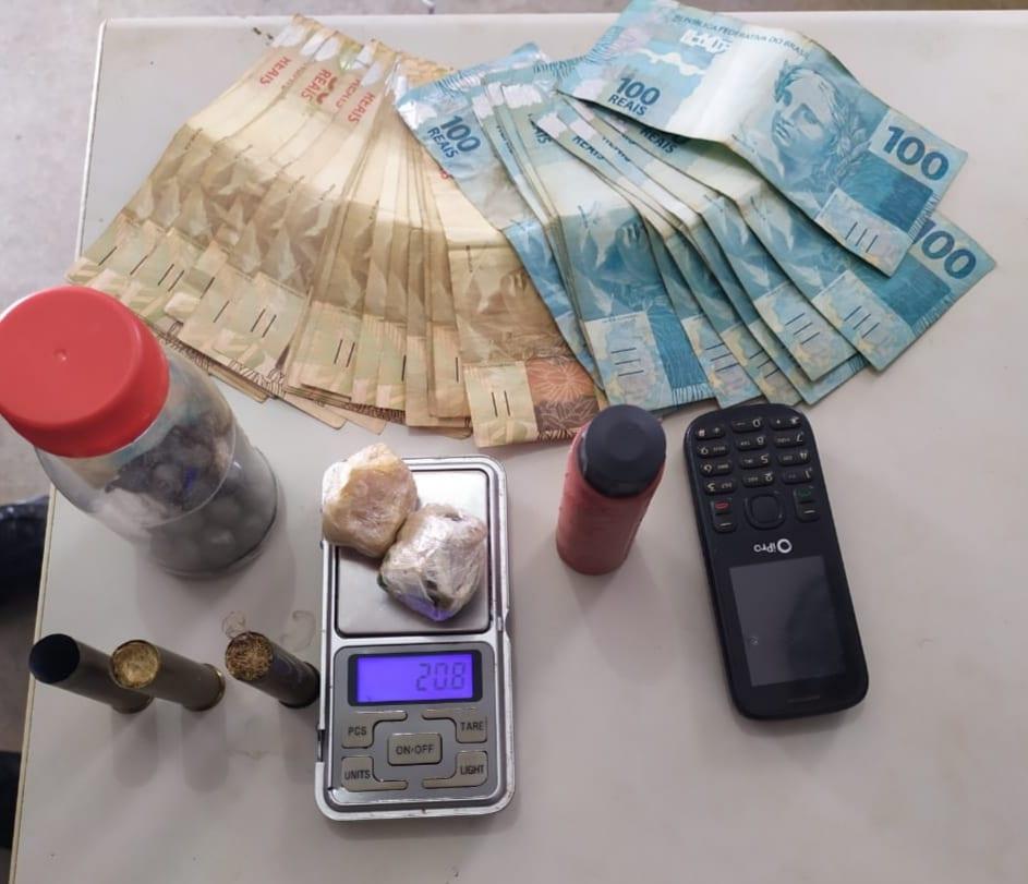 Durante a busca domiciliar, foram encontradas porções de crack, maconha, uma balança de precisão, uma lâmina para corte e a quantia de R$2.550 reais em espécie, possivelmente proveniente do tráfico de drogas.