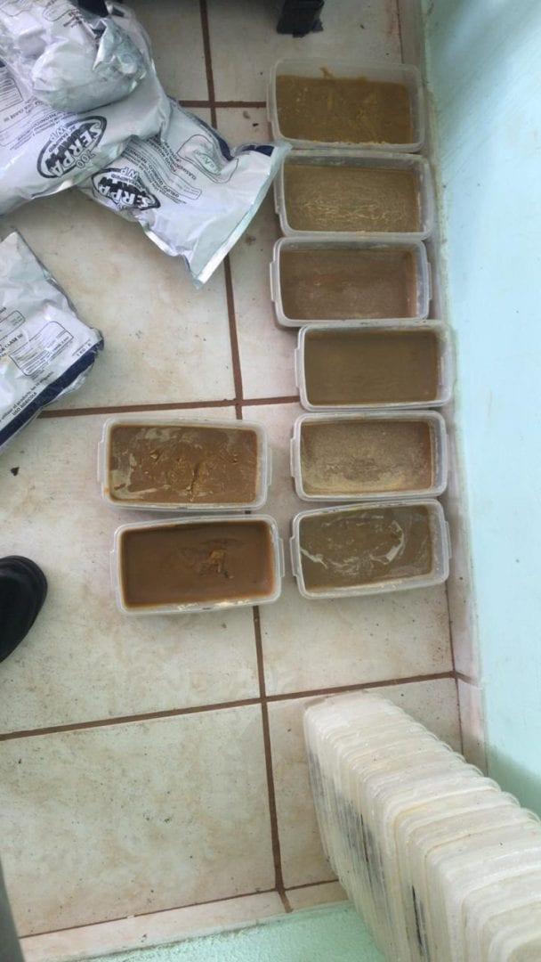 Também foram encontrados 10 quilos de cocaína, 4,2 quilos de cafeína e 32 quilos de Fenacetina.