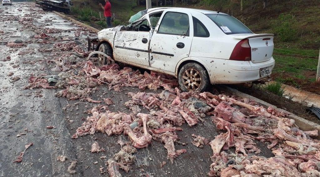 De acordo com informações do Corpo de Bombeiros Militar de Goiás (CBMGO), por causa do derramamento do descarte de abatedouro na rodovia, os condutores do guincho e do outro veículo, um Corsa Sedan, derraparam após perderem o controle da direção, o que resultou na colisão.