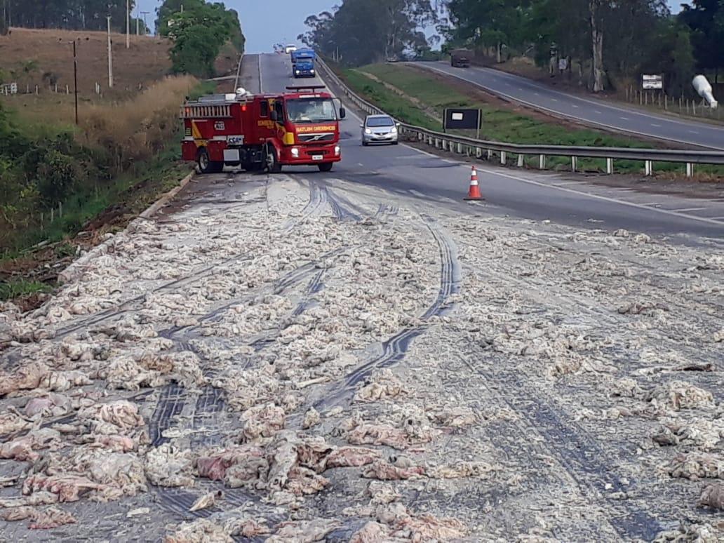 Guarnições da 7º Companhia Independente Bombeiro Militar de Inhumas foram acionadas para realizar a limpeza de pista, uma vez que o descarte de abatedouro se encontra espalhado pela via.