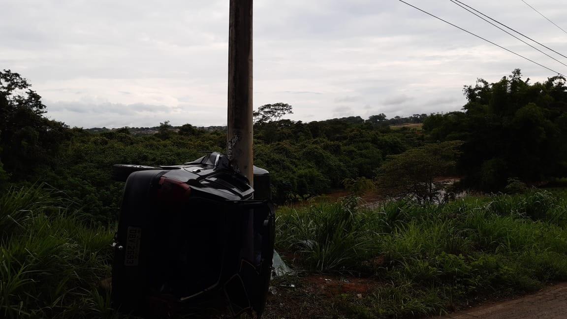 Quando chegou no Km 5, ele perdeu o controle da direção, derivou para a esquerda, subiu em um barranco e, em seguida, capotou. O carro parou após bater em um poste de iluminação pública às margens do Rio Meia Ponte. O pneu esquerdo dianteiro encontra-se totalmente sem sulcos.