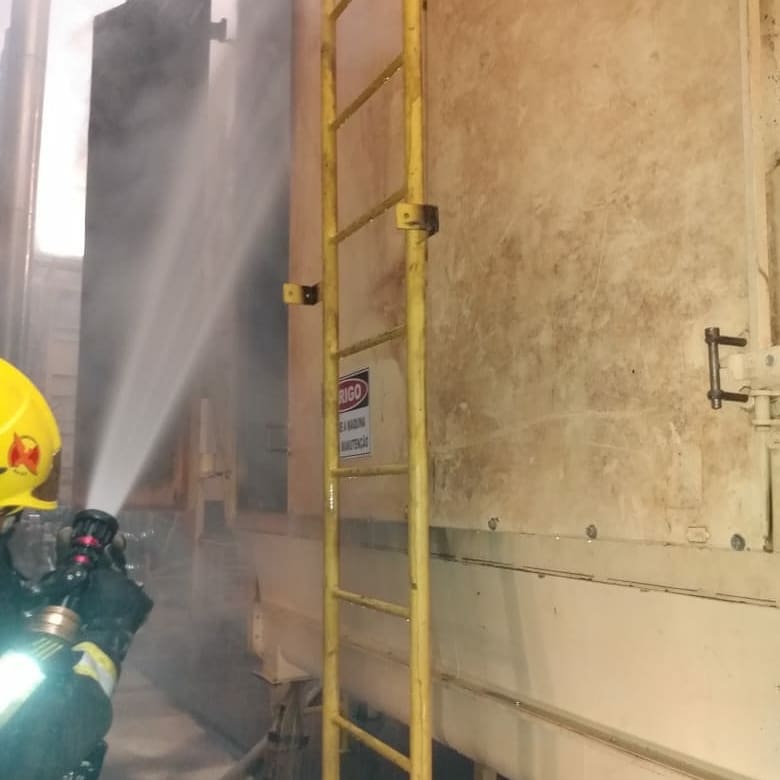 Conforme informações dos bombeiros que atuaram na ocorrência, quando chegaram no local verificaram que as chamas estavam concentradas em um secador de sementes.