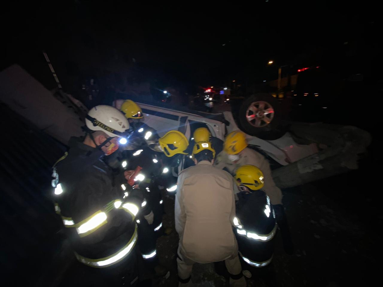 O Corpo de Bombeiros Militar do Estado de Goiás (CBMGO) foi acionado, na madrugada deste domingo (24/5), para atender uma ocorrência de um capotamento que deixou três feridos na Avenida dos Alpes, na Vila Alpes, em Goiânia.