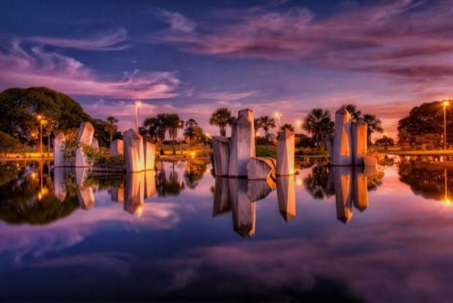 Assim, Marx pediu para que fossem desenhados em concreto diversos cristais, que hoje, se encontram no espelho d’água principal, representando toda a riqueza existente no Plano Piloto do DF. Além dessas peças, também existem várias “ilhas” por ali, que podem ser acessadas por trilhas de concreto. Como se não bastasse, também há diversos jardins no lugar e a título de curiosidade, Burle Marx utilizou cerca de 53 espécies de plantas na Praça dos Cristais, sendo a maioria nativa do Cerrado.