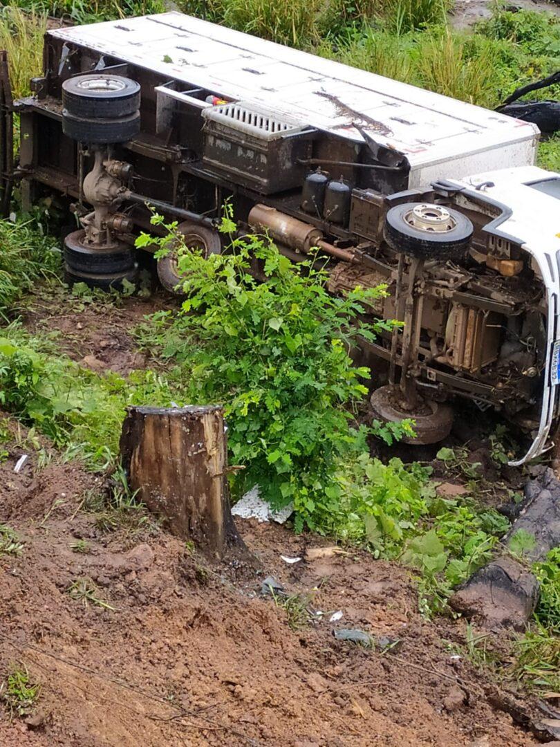 O primeiro acidente aconteceu na manhã de segunda feira (7), na BR-153, Km 206, município de Uruaçu, região norte de Goiás. Segundo a corporação, o motorista de um caminhão seguia de Goiânia para o norte de Goiás, quando perdeu o controle da direção, saiu da pista e capotou.