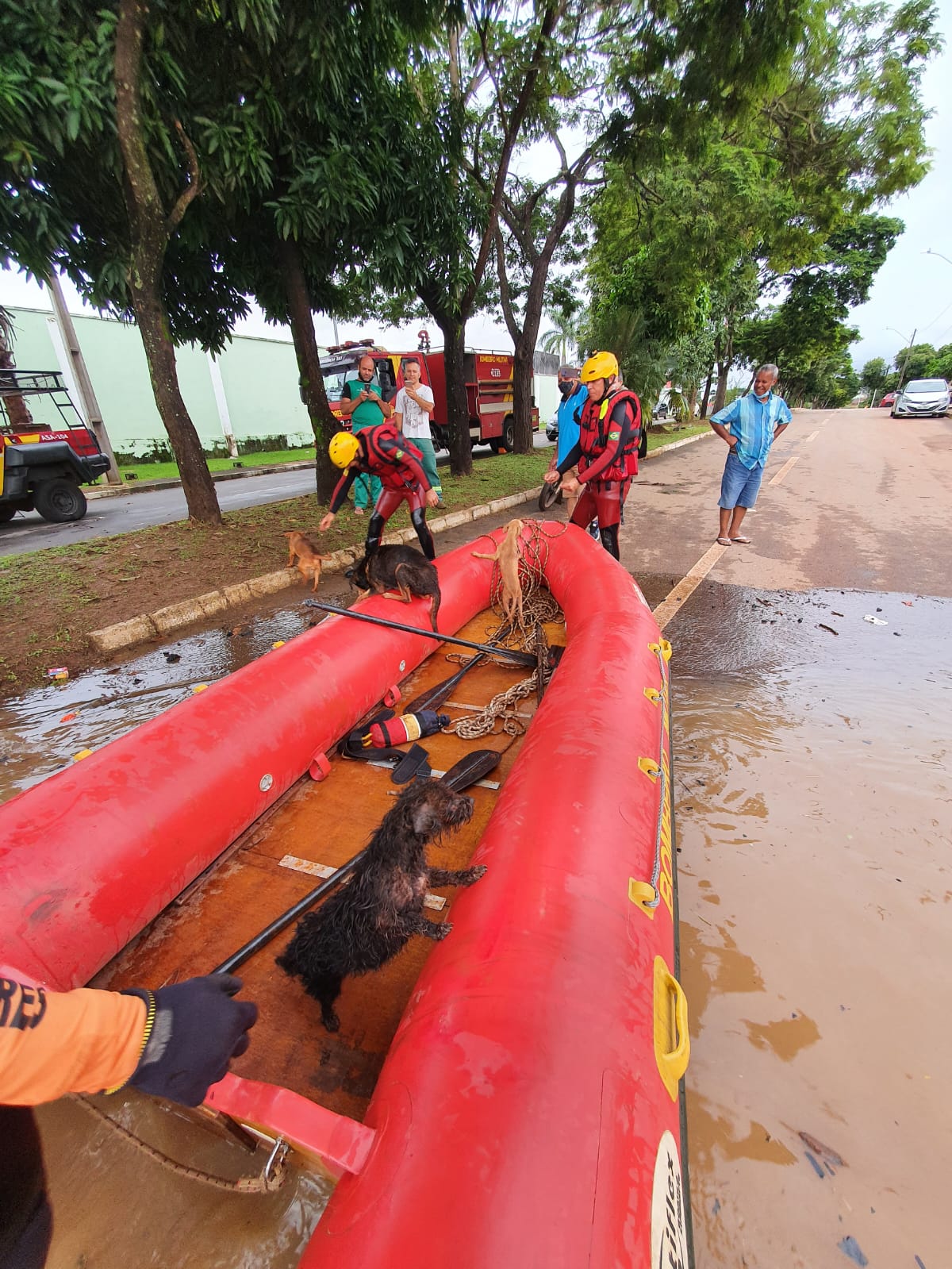 Segundo a corporação, a cheia alagou um viveiro da Prefeitura de Goiânia, onde estavam os animais e alguns trabalhadores, que conseguiram sair e acionar o resgate dos cães. Os militares utilizaram embarcações para que os animais pudessem ser encaminhados para local seguro. Eles foram entregues aos proprietários sem ferimentos.