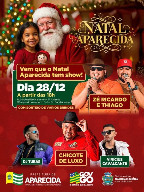 A programação do Natal Aparecida segue movimentando os bairros de Aparecida de Goiânia e, neste domingo (28), leva música, cultura e entretenimento ao Setor Aeroporto Sul.